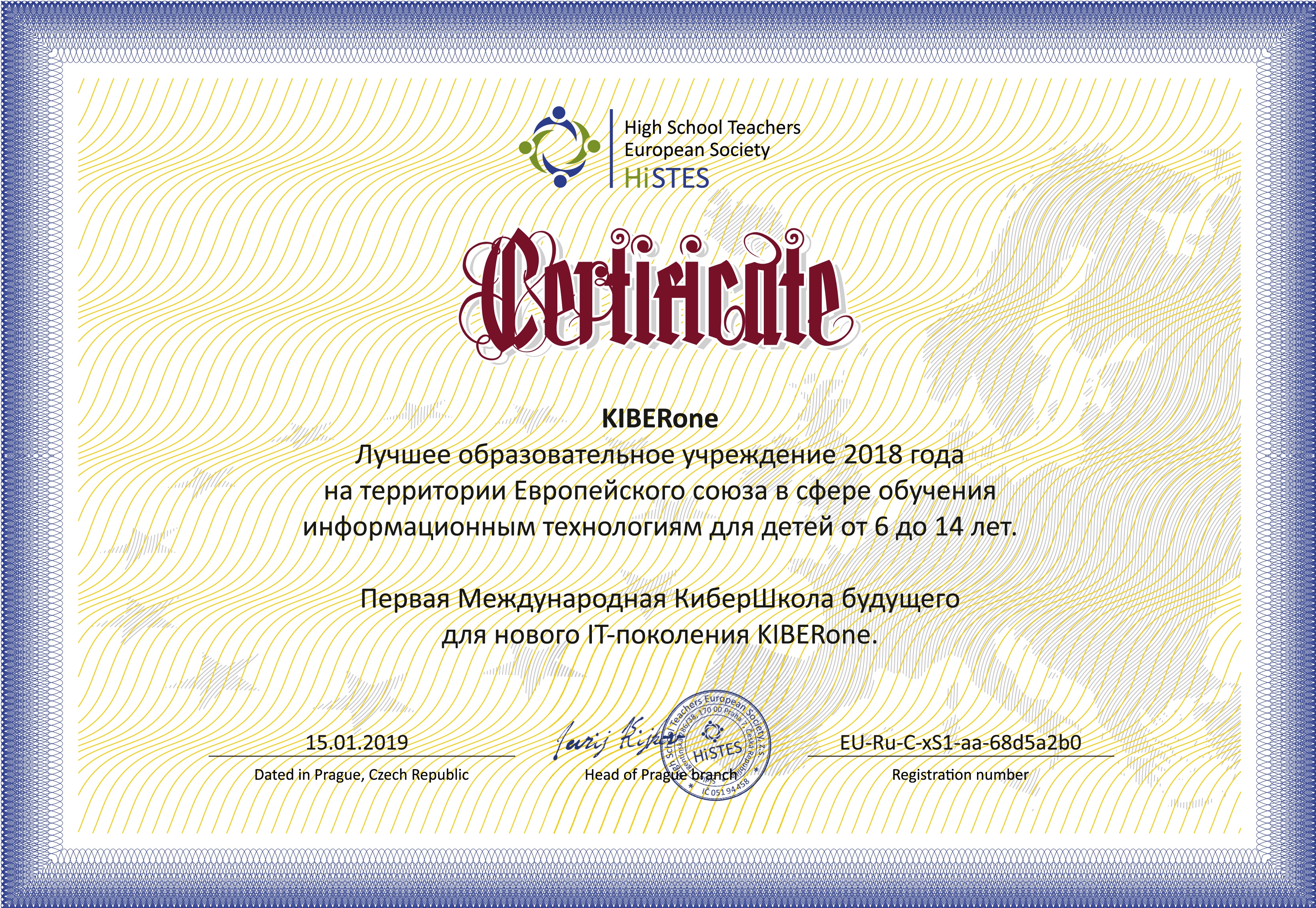 Cea mai bună instituție de învățământ din Uniunea Europeană în domeniul educației tehnologiei informației, pentru copiii cu vârste cuprinse între 6 și 14 ani.